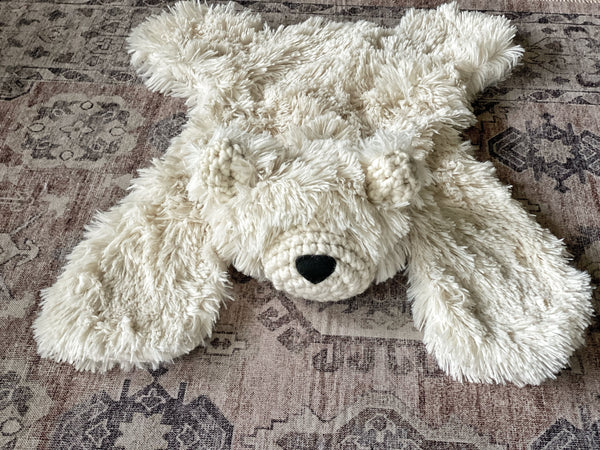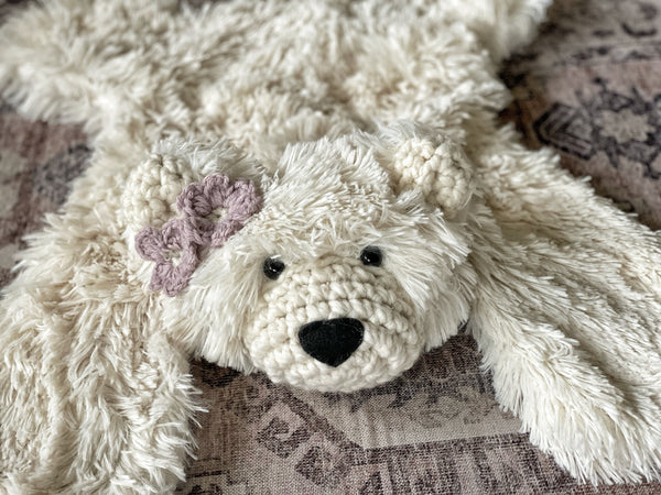 ClaraLoo Animal Loveys are made with faux fur, polyester stuffing, flannel fabric (for some of the animals), yarn, and felt (for some of the animals).
