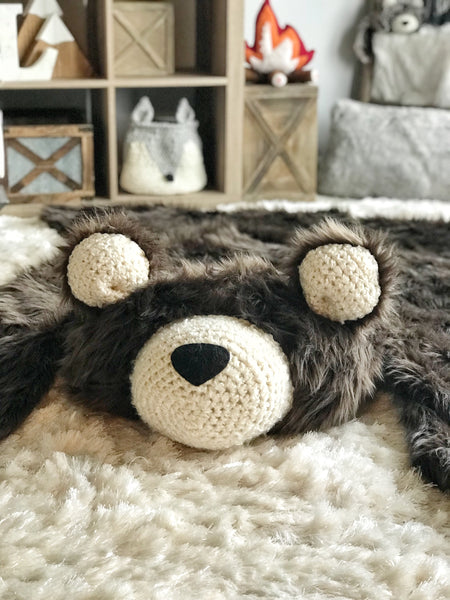 ClaraLoo Animal Rugs are made with faux fur, polyester stuffing, flannel fabric, yarn, and felt (for some of the animals).